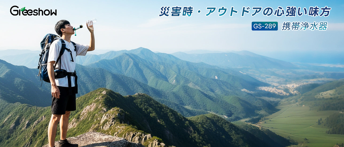 当店の浄水器シリーズは「日常の健康守り」と「災害時の備え」の両方に対応し、家庭・キャンプ・車中泊など多シーンで使用可能です。 最高水準の除去率99.9999%を日本の厚生労働省水質検査機関にて実証しているGreeshow 携帯浄水器は、防災士の認定・推奨も受けている信頼性の高い製品です。