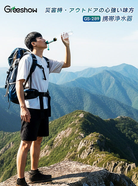 【防災士推奨】Greeshow 携帯浄水器 GS-285|防災用・アウトドア対応|フィルター交換可能|厚生労働省水質実証済み|軽量コンパクト設計