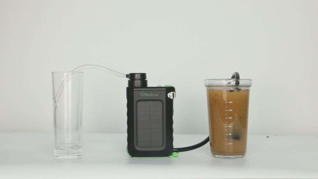 【業界最新&手動ボンプ付き】Greeshow 携帯浄水器 アウトドア 浄水器 電動浄水器 日本正規品 ソーラー充電可能 濾過器 飲み水 災害 防災士推奨 サバイバル浄水器 スマホ充電機能 高輝度LEDライト付き SOSモード 緊急停電対策 防災グッズ キャンプ/登山/地震/防災用 軽量・コンパクト PSE認証済み GS-2809